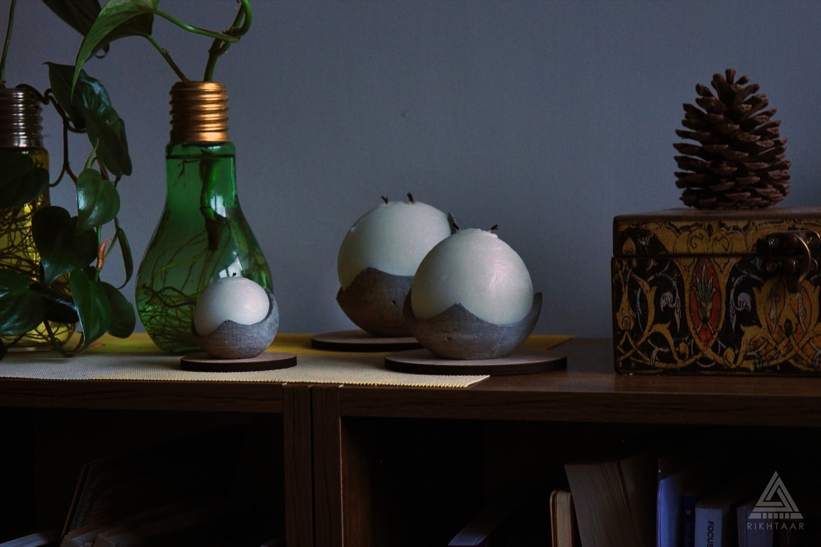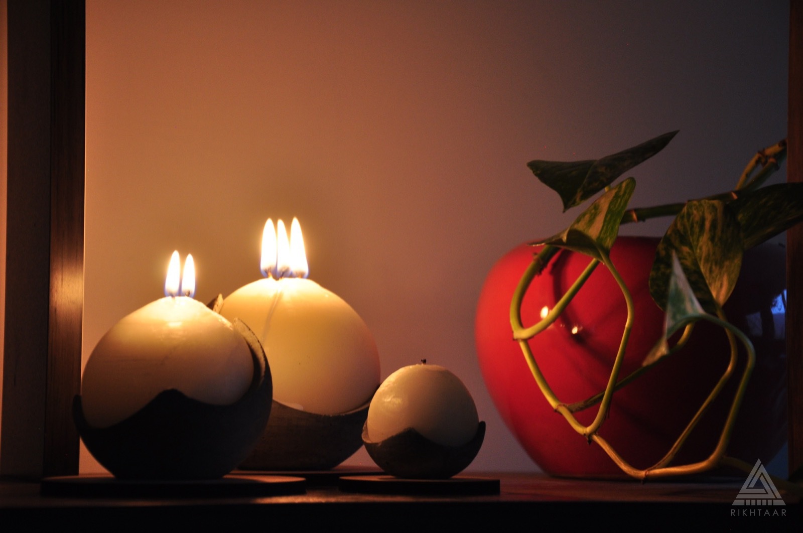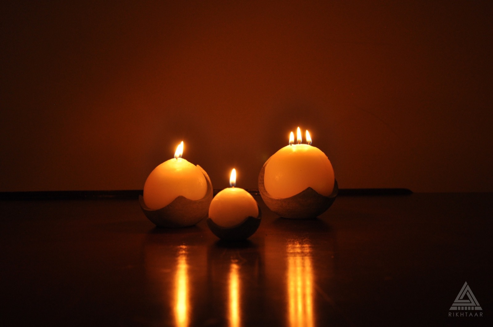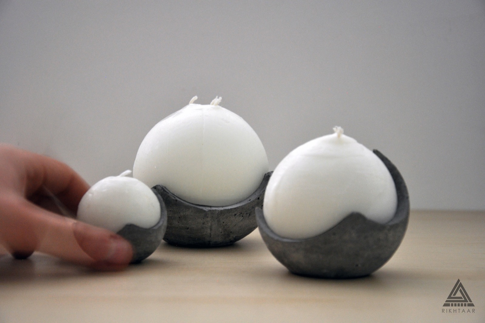 Rikhtaar First is a simple and pure attempt at exploration in form and material composition. The sphere form, as an ideal volume on a solid concrete base, reaches the burning flame of a candle that until it melts, time in the space between the soft lines of paraffin and concrete is the gentle music of burning. Perhaps you can place this sphere somewhere not so far that its burning cannot be heard and not so close that your foot hits it; but don’t crowd its surroundings. Let it not be lost in our world.