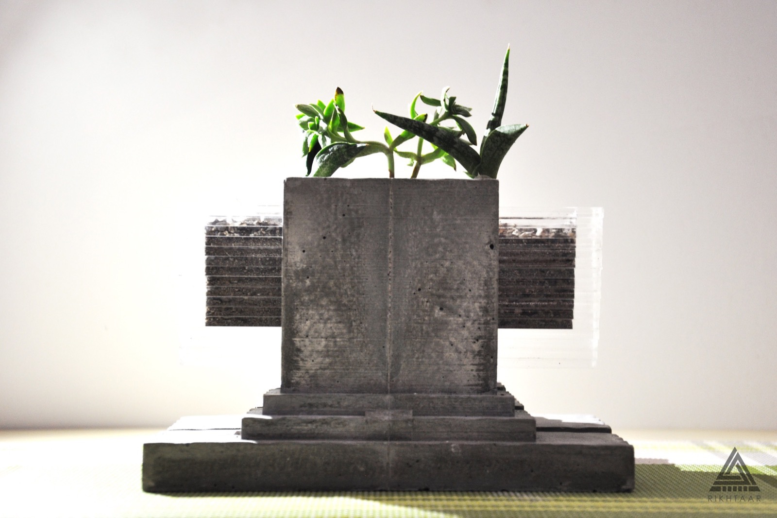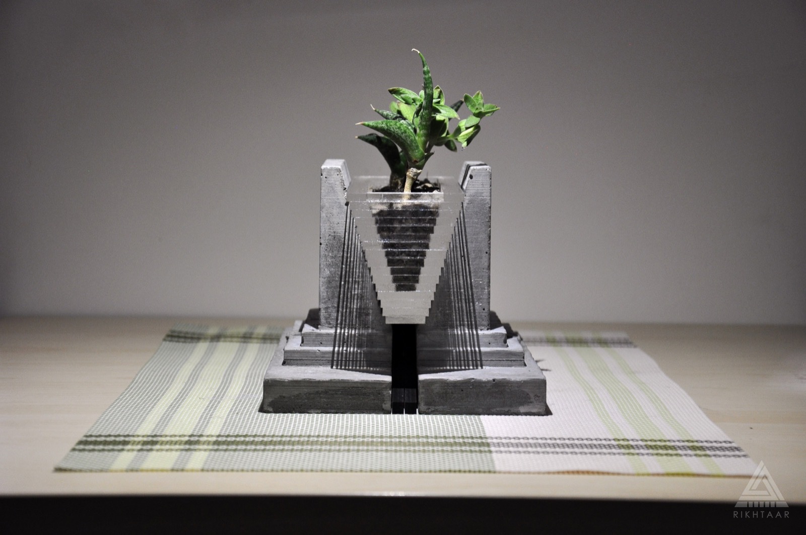Rikhtaar Third is another experiment in material composition, transparency and solidity, delicacy and hardness. This composition, where a plant appears as if some heavenly feast caught by invisible hands at the peak, dreamlike, is such a temple standing upon a sacred covenant…a sip of water daily, the price of living…